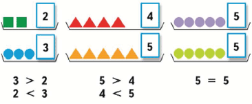 Будем учиться использовать знаки >, <, = в записях.