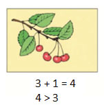 Во второй строчке сделаем запись: четыре больше, чем три.