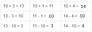 | 13 - 10 = 3 | 11 - 10 = ![]() | 14 - 10 =![]() |