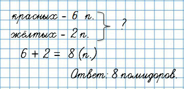 1. На тарелке было 6 красных помидоров и 2 жёлтых.