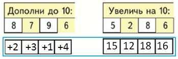 10 - это 8 и 2, значит, чтобы получить 10, нужно к 8 прибавить 2.