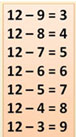 | 12 - 3 = 9 | 12 - 4 = 8 | 12 - 5 = 7 | 12 - 6 = 6 |