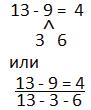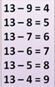 | 13 - 4 = 9 | 13 - 5 = 8 | 13 - 6 = 7 |