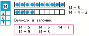 Сначала вычитаем столько, чтобы получить 10. Значит, из 14 нужно вычесть 4.