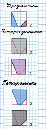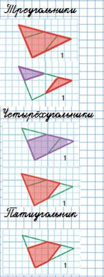 4. Сколько разных многоугольников на каж­дом чертеже? Назови их.
