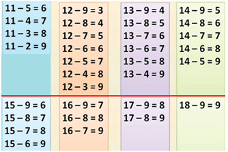| 17 - 8 = 9 | 17 - 9 = 8 | 18 - 9 = 9 |