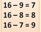 | 16 - 9 = 7 | 16 - 7 = 9 | 16 - 8 = 8 |