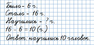 3. В начале зимы только 6 человек из нашего класса умели кататься на лыжах, а к концу зимы на лыжах катались уже 16 человек.