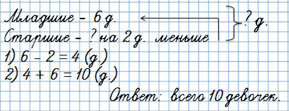 3. В группе фигурного катания занимаются 6 девочек из младших классов, а из старших на 2 девочки меньше.
