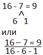 Сравниваем числа 16 и 6. Вычитаем из большего числа меньшее. Знак минус.