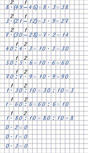 | 8 • (49 - 46) = 8 • 3 = 24 | 40 : 4 • 3 = 10 • 3 = 30 |