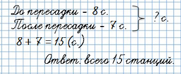 16. Внучка ехала на метро навестить бабушку. До пересадки она проехала 8 станций, после пересадки ещё 7. Сколько всего станций проехала внучка?