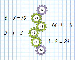 | (40 - 8) : 4 | 5 • 6 : 3 |