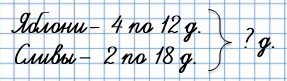 Выражение 12 • 4 позволит нам узнать, сколько яблонь всего посадили, а выражение 18 • 2 - сколько слив. Если вычесть из выражения 12 • 4 выражение 18 • 2, мы узнаем, на сколько больше посадили яблонь, чем слив.