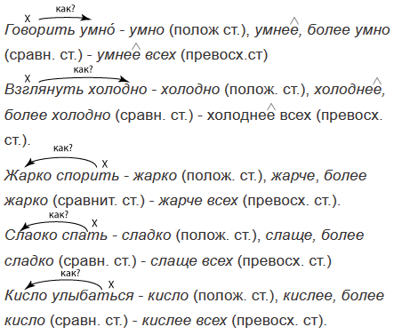 С данными словами составьте глагольные словосочетания. Запишите эти словосочетания, образуя степени сравнения наречий. Докажите, что данные слова являются наречиями.