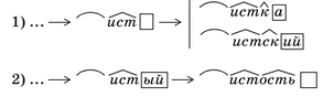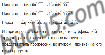 1. Рассмотрите схемы. Одинаковое ли значение суффикса -ист- у слов каждой группы? Обоснуйте свой ответ.