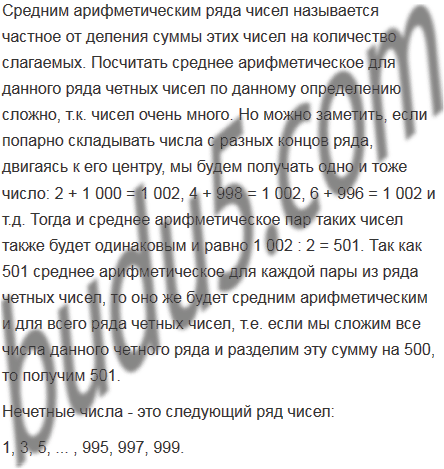 На сколько среднее арифметическое всех четных чисел от 1 до 1 000 включительно больше, чем среднее арифметическое всех нечетных чисел от 1 до 1 000 включительно?