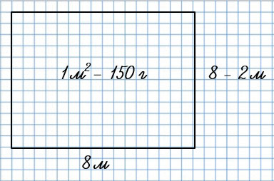 30. В комнате, длина которой 8 м, а ширина на 2 м меньше длины, надо покрасить пол. Сколько для этого понадобится краски, если расходовать по 150 г на 1 м2?