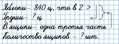 19. В саду собрали 840 ц яблок, их было в 2 раза больше, чем груш. Третью часть всех этих фруктов уложили в ящики, по 14 кг в каждый. Сколько для этого потребовалось ящиков?