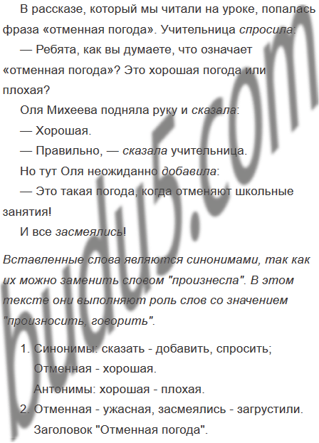 — Ребята, как вы думаете, что означает «отменная погода»? Это хорошая погода или плохая?