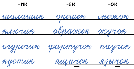 Обрати внимание на суффиксы -ек / -ик. Чтобы понять, какая гласная (е или и) будет стоять в суффиксе, надо поставить слово в родительный падеж. Более подробно о правописание этих суффиксов смотри в справочнике.