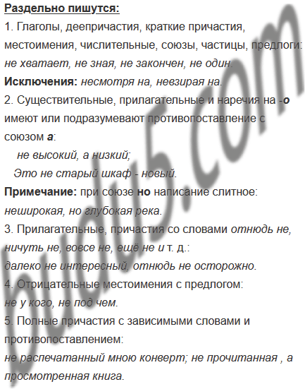 | 1. Слово без не не употребляется: неистовый; | 1. Глаголы, деепричастия, краткие причастия, местоимения, числительные, союзы, частицы, предлоги: не хватает, не зная, не закончен, не один. Исключения: несмотря на, невзирая на. |