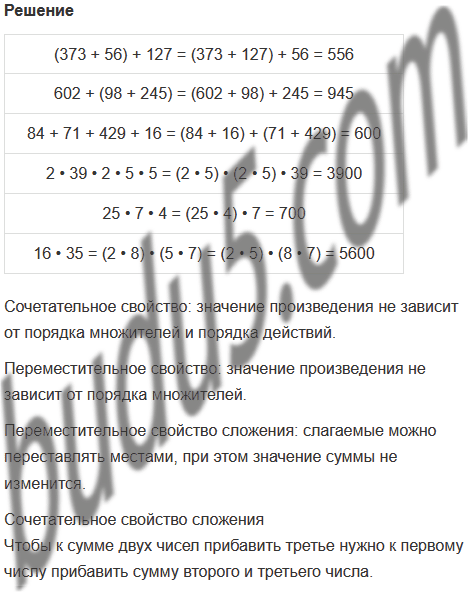 Задание № 7. Выполни действия наиболее удобным способом. Какие свойства чисел при этом используются?