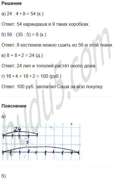 а) В 4 одинаковых коробках 24 карандаша. Сколько карандашей в 9 таких коробках?