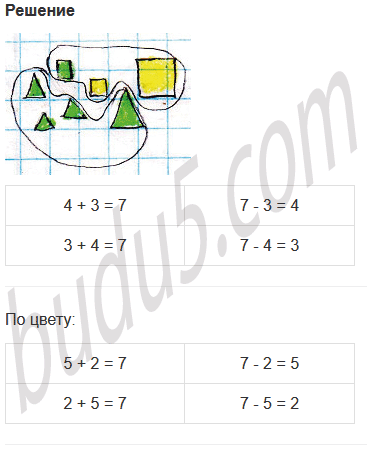 Задание № 5. Назови элементы множества фигур на рисунке. Нарисуй его в тетради и разбей на части по форме. Составь 4 равенства.