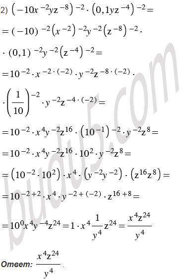 Выполните действия и приведите полученное выражение к виду, не содержащему степени с отрицательным показателем: