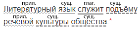 Язык художественной литературы представляет литературную* речь в её высшем, поэтическом проявлении*. Он непосредственным образом влияет на формирование и укрепление систем литературных норм. Литературный язык служит подъёму речевой* культуры общества.*