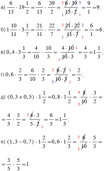 1) произведением двух дробей является дробь, числитель которой равен произведению числителей, а знаменатель - произведению знаменателей. При выполнении умножения дробей, чтобы вычисления были проще, не надо перемножать сразу, лучше сделать это после сокращения. Сократить дробь - значит, разделить ее числитель и знаменатель на одно и то же число (наибольший общий делитель). ;