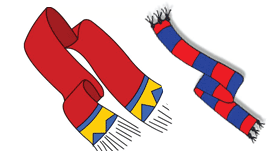 Тоже на глаз видно, что красный шарф шире, чем сине-красный.