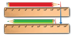 Мы и на глаз видим, что жёлтый карандаш короче красного.